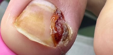 Remoção da carne esponjosa nas unhas (granuloma) com técnicas adequadas, seguido do uso de produtos especiais para cauterização e cicatrização e alivio da dor.