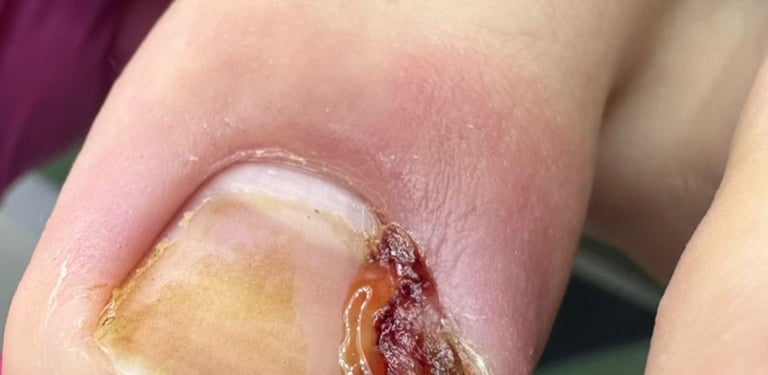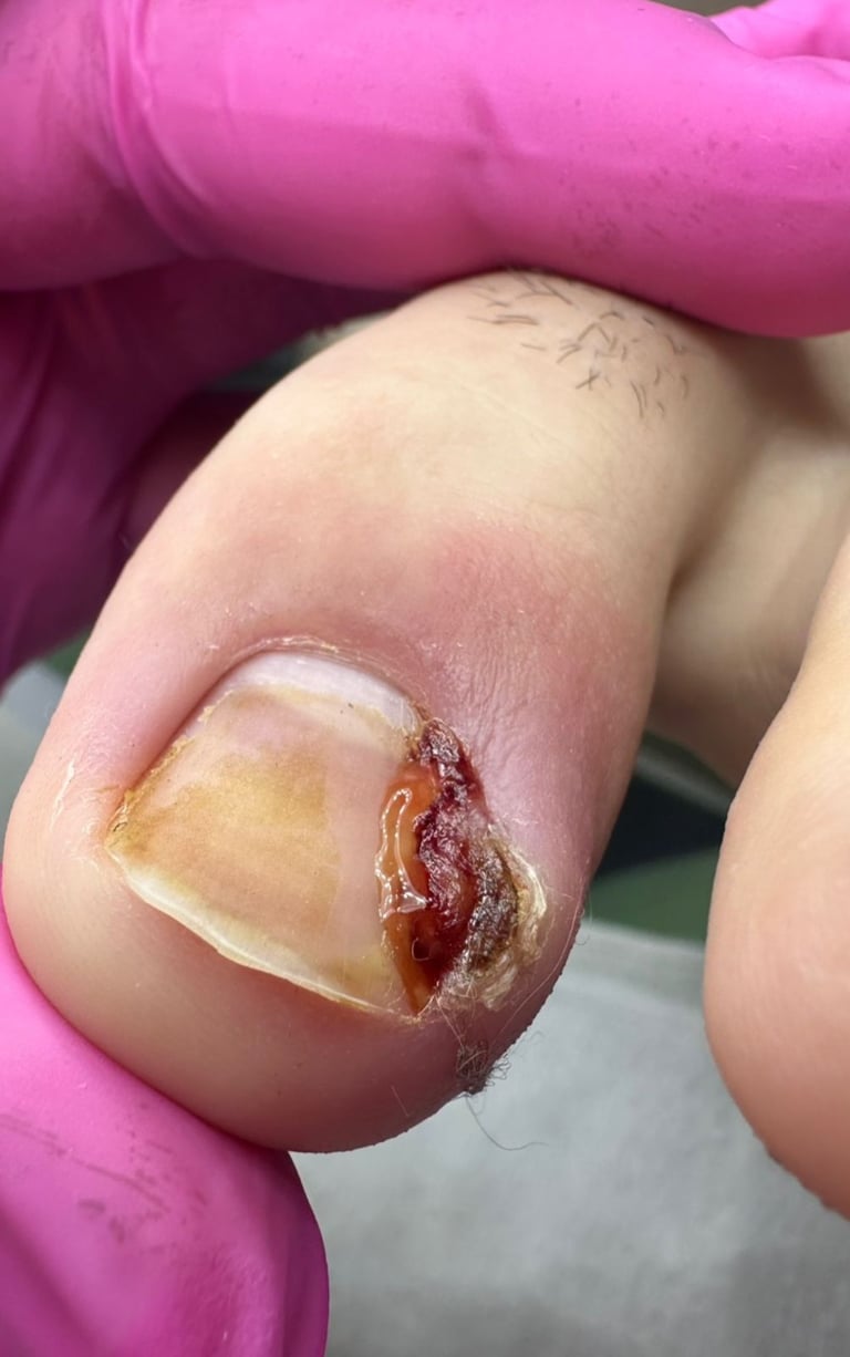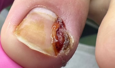 Tratamento da espícula (parte da unha que encrava) para aliviar a dor, seguido de corte preciso para corrigir o crescimento e evitar eventuais problemas futuros.